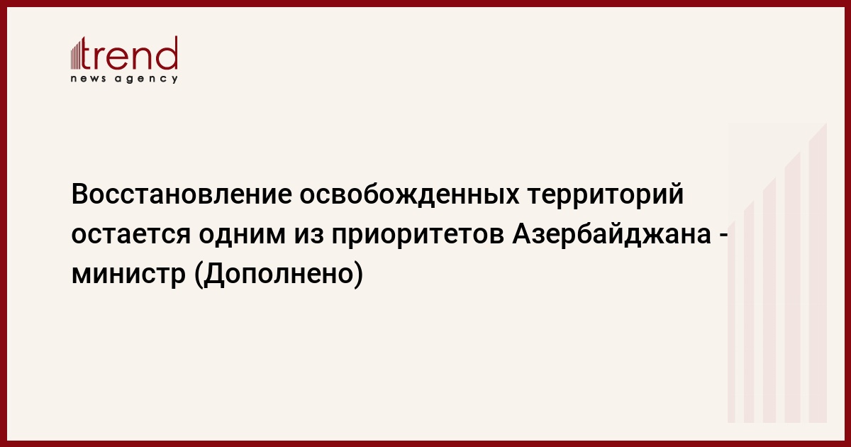 БАКУ /Trend/ - Восстановление освобожденных территорий остается одним из приоритетов Азербайджана.