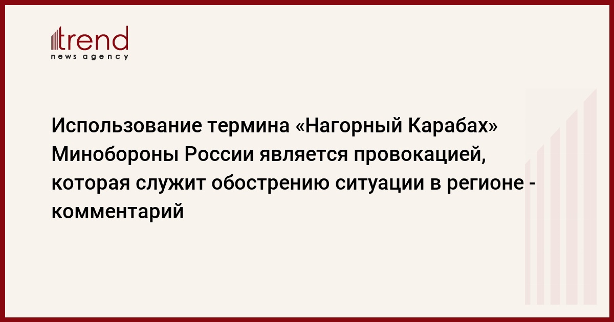БАКУ /Trend/ - Использование термина «Нагорный Карабах» в заявлении Минобороны России о гуманитарной помощи Украине недопустимо и является очередной провокацией ведомства, которая служит обострению ситуации в регионе.