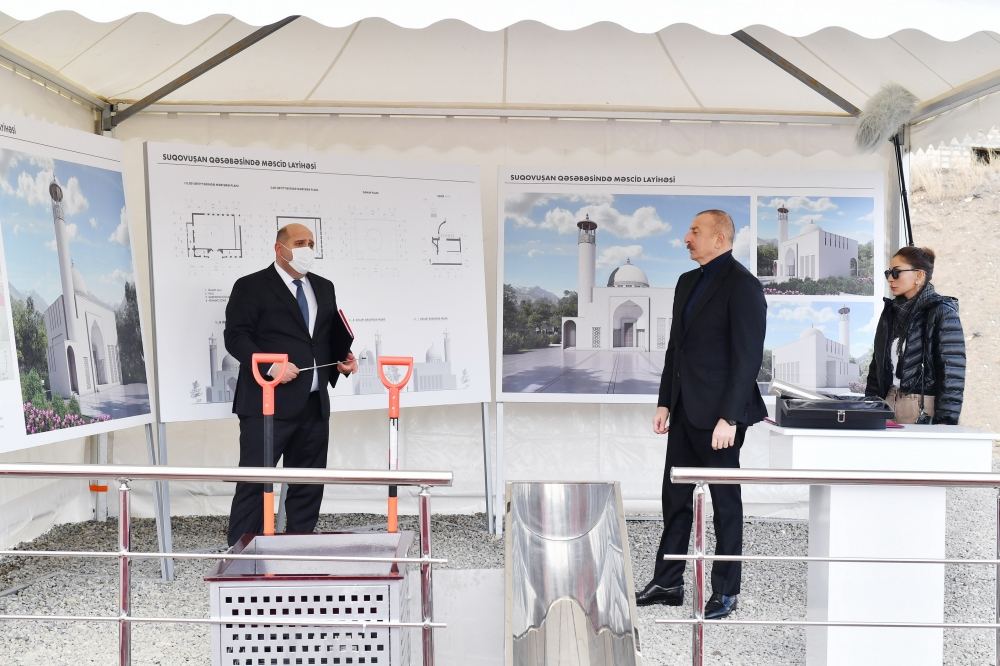 БАКУ /Trend/ - Президент Азербайджанской Республики Ильхам Алиев и Первая леди Мехрибан Алиева заложили фундамент новой мечети в поселке Суговушан Тертерского района.