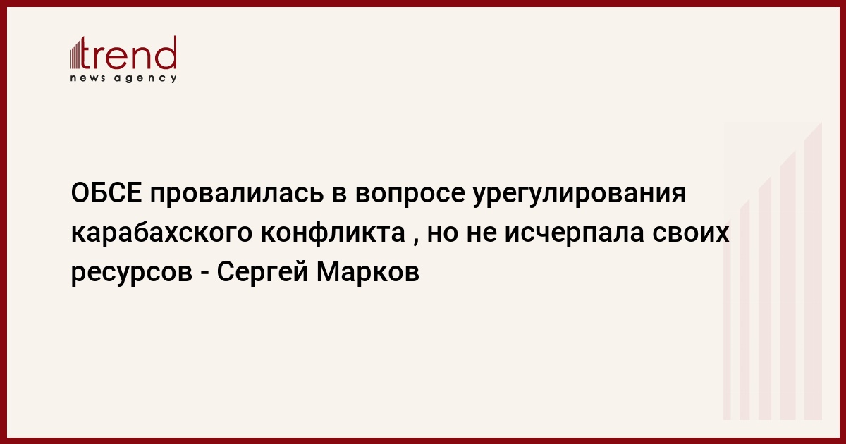 Марков подчеркнул, что ОБСЕ выступает в разных ипостасях: с одной стороны - это все организации ОБСЕ, у которых множество структур, с другой – Минская группа ОБСЕ как большая группа стран, выразивших желание быть модераторами в конфликте между Арменией и Азербайджаном, а с третьей – три сопредседателя МГ ОБСЕ в лице России, США и Франции.