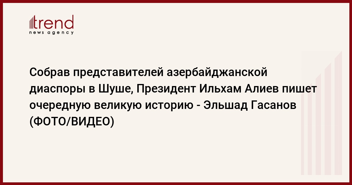 «Мы показываем всему миру, что являемся сильной страной, героическим народом. Мы освободили свои земли собственными силами. А теперь азербайджанцы мира собрались в Карабахе, в Шуше. Президент Азербайджана, Победоносный Верховный главнокомандующий Вооруженными силами Ильхам Алиев дал нам эту счастливую возможность. Он является автором наших побед. Президент Ильхам Алиев имеет исключительные заслуги перед Азербайджанским государством. Под руководством Президента Ильхама Алиева мы одержали Победу над врагом на поле боя, продемонстрировали миру истинное лицо армянской диаспоры», - сказал Гасанов.
