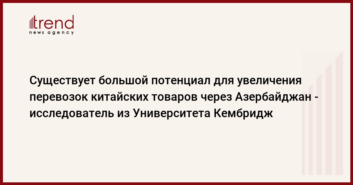 БАКУ /Trend/ - Существует большой потенциал для увеличения перевозок китайских товаров через Азербайджан.