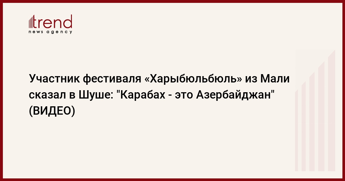 Участник фестиваля «Харыбюльбюль» из Мали сказал в Шуше: "Карабах - это Азербайджан".