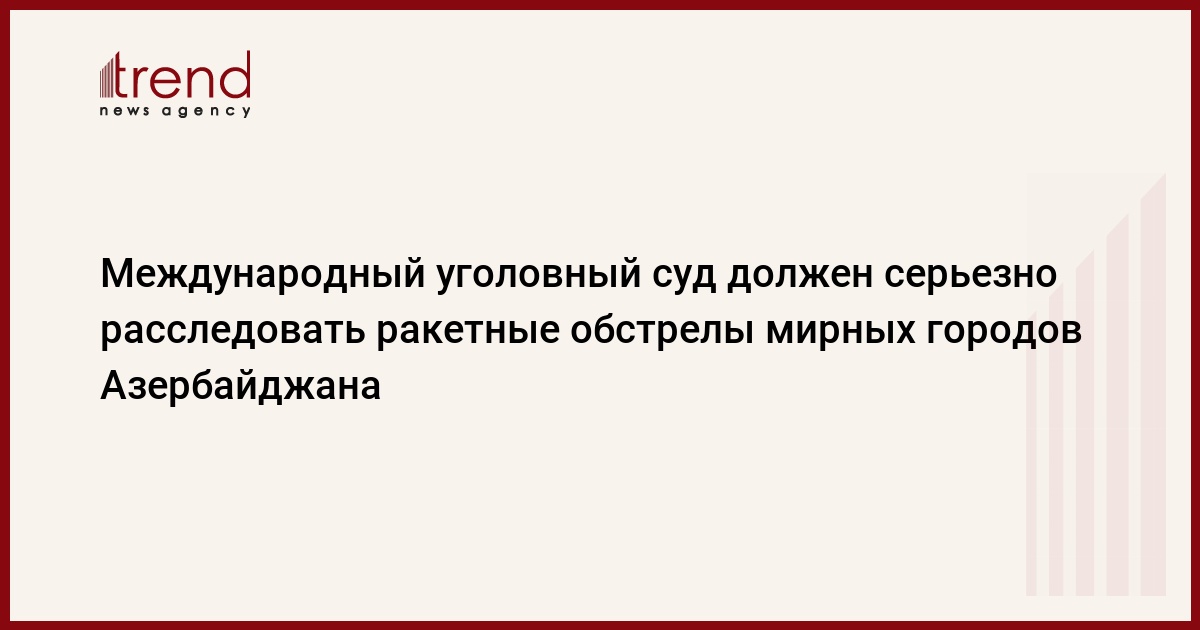 «В связи с этим Международный уголовный суд, помимо преступлений, совершенных в Украине, должен тщательно расследовать ракетные обстрелы Гянджи, Барды, Тертера и других мирных городов Азербайджана в ходе 44-дневной войны, убийства мирного населения, в том числе женщин, стариков и детей, а также принять соответствующие решения для привлечения виновных в этих преступлениях к ответственности. Правосудие должно быть объективным, беспристрастным и далеким от двойных стандартов. Но, к сожалению, как во время оккупации наших земель, так и сегодня мы являемся свидетелями несправедливости и двойных стандартов в отношении Азербайджана.