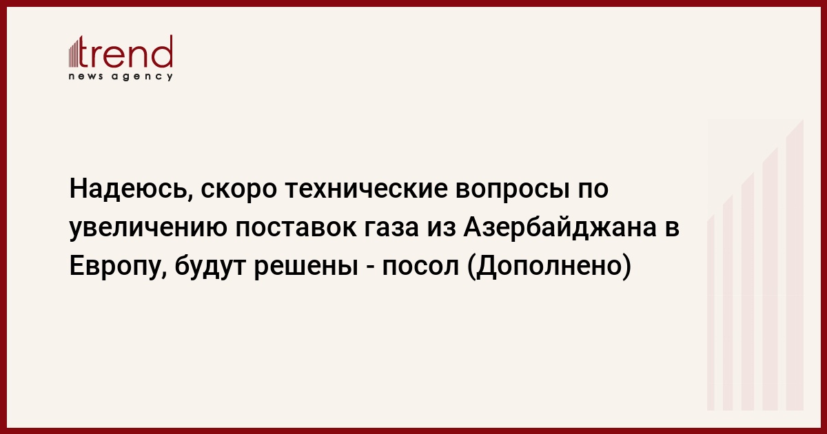 БАКУ /Trend/ - Надеюсь, что скоро все технические вопросы, связанные с увеличением поставок газа из Азербайджана в Европу, будут решены.