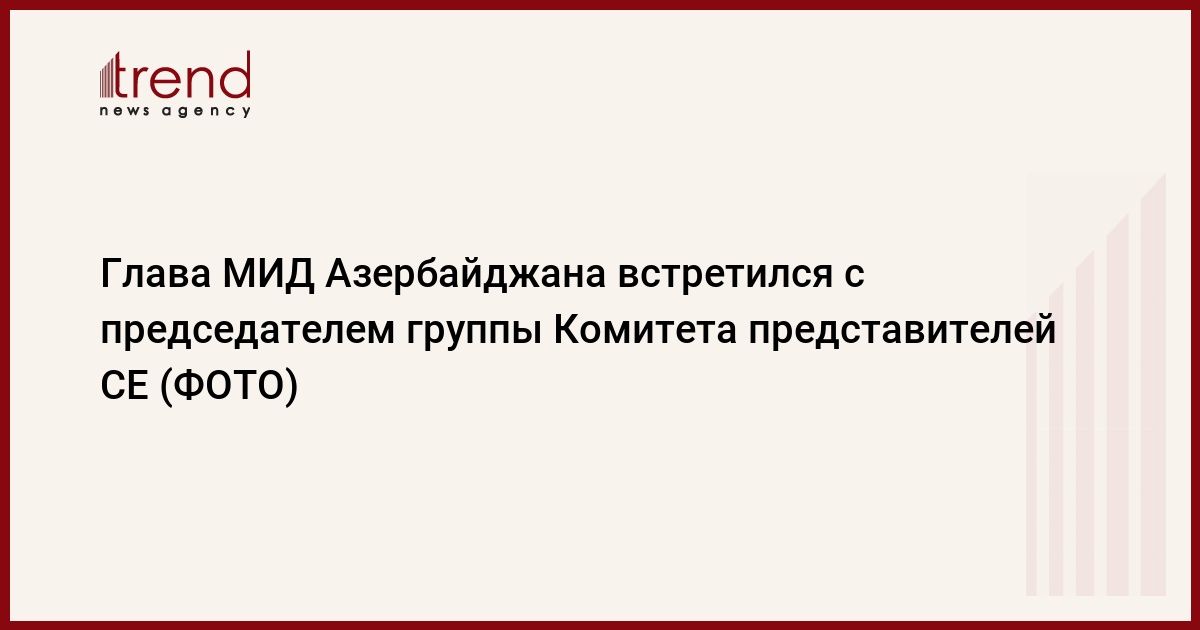 БАКУ /Trend/ - 17 июня министр иностранных дел Азербайджана Джейхун Байрамов встретился с делегацией, состоящей из группы послов-членов GR-DEM во главе с председателем группы докладчиков по вопросам демократии (GR-DEM) Комитета представителей Совета Европы (СЕ), постоянным представителем Швеции при СЕ Мартином Энбергом.