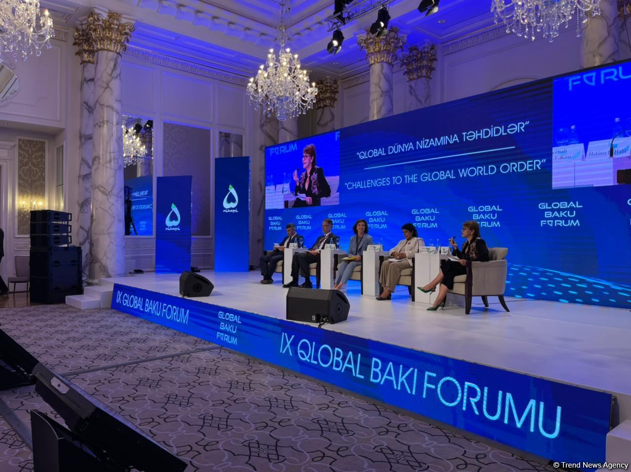 В IX Глобальном Бакинском форуме, посвященном теме "Угрозы глобальному миропорядку", принимают участие представители более 50 стран, а также авторитетных международных организаций. На форуме, который продлится до 18 июня, проходят плодотворные обсуждения важных проблем, представляющих угрозу для глобального миропорядка, а также угрозы энергетической безопасности, вопросы обеспечения безопасности и мира во всем мире, сотрудничества и интеграции в уязвимых регионах, вопросы растущей несправедливости в глобализирующемся мире, трансформация продовольственного и сельскохозяйственного секторов для предотвращения бедности.