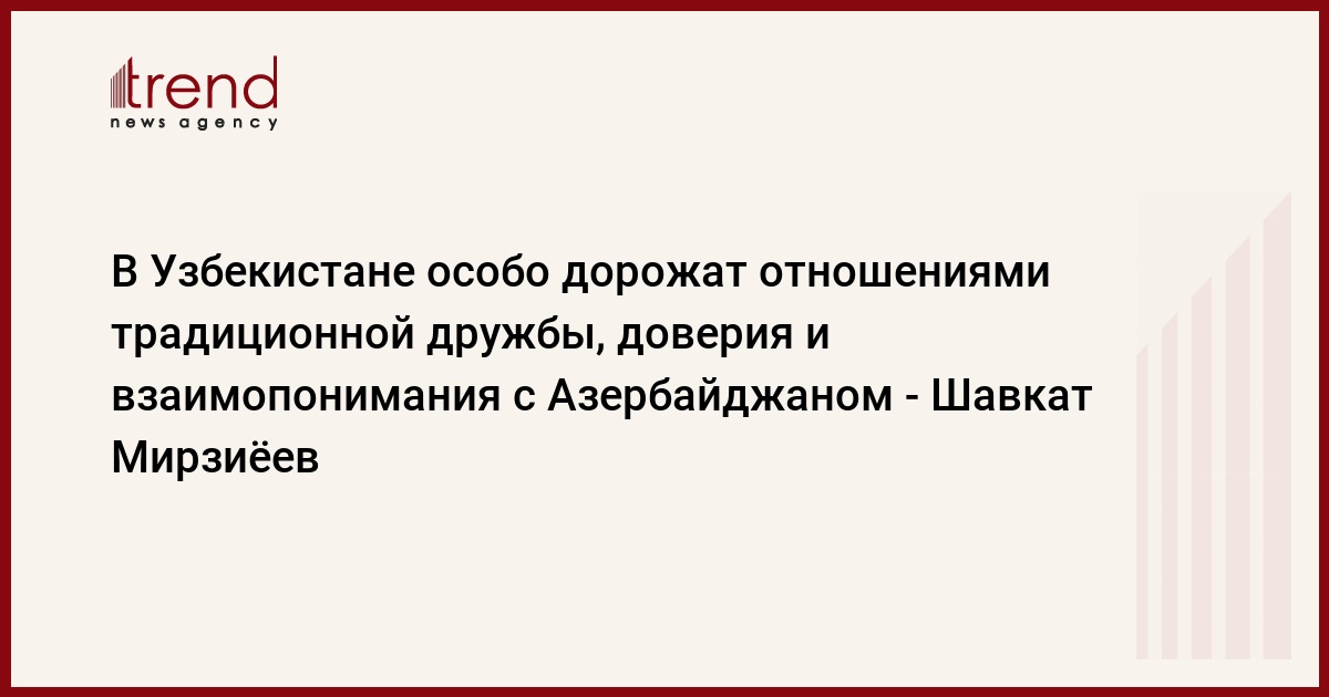 БАКУ /Trend/ - В Узбекистане особо дорожат отношениями традиционной дружбы, доверия и взаимопонимания с Азербайджаном.