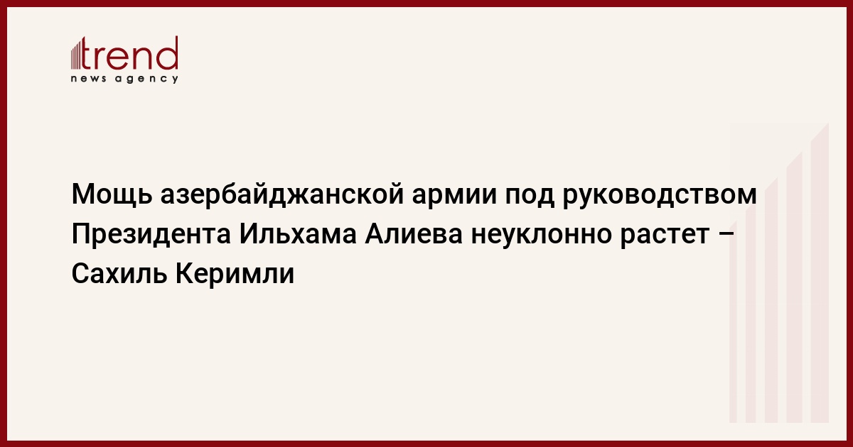 Керимли добавил, что азербайджанская армия неуклонно повышает уровень своего профессионализма и боеспособности, материально-техническая база армии постоянно обновляется, закупаются новые современные виды вооружения. Все это еще больше укрепляет силу и мощь азербайджанского государства, создает основу для решительного предотвращения любых возможных угроз территориальной целостности страны.