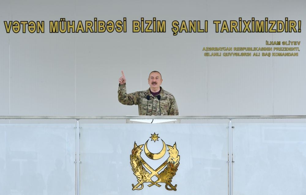 Поражение, которое мы нанесли Армении в Отечественной войне, должно послужить для них уроком. Они считали, что их армия непобедима, и распространяли о ней всякие небылицы. Мы показали, что они не могут устоять перед Азербайджанской армией. Они заявляли, что Азербайджан никогда не сможет вернуть свои земли вооруженным путем, потому что и построенные укрепления, и проведение в течение 30 лет инженерных работ, и география этого региона создавали для них очень благоприятные условия. Мы разрушили и этот миф, показав, что там, где есть твердая воля, единство народа и власти, патриотизм военнослужащих, никто не сможет устоять перед нами. Если реваншистские силы в Армении вновь поднимут голову, то они должны знать, что их ждет.