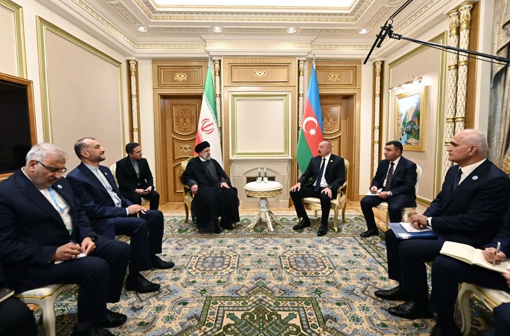 -Именем Аллаха, Милостивого и Милосердного. Я тоже очень рад встрече с Вами. Считаю, что один из важных вопросов, связанных с Каспийским морем, заключается в том, что главы государств прикаспийских стран регулярно встречаются. Конечно, у нас есть такие планы, как визит Вашего превосходительства в Тегеран и мой визит в Баку. Однако использование нами таких платформ для проведения встреч тоже способствует развитию наших отношений. В настоящее время потенциал отношений между двумя странами выше используемого. Считаю, что мы не смогли задействовать полностью значительный потенциал в наших отношениях. Полагаю, что политические, экономические отношения, торговые, культурные связи между двумя странами могут получить большее развитие, чем сейчас.