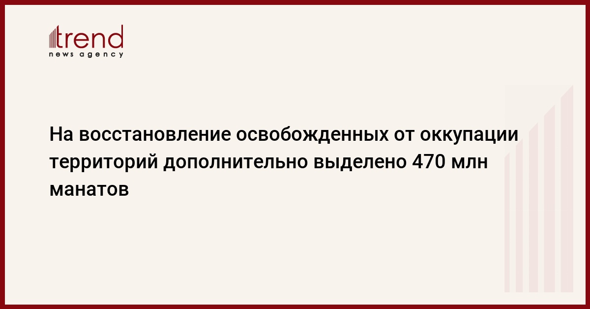 Согласно изменениям, на реконструкцию и восстановление освобожденных территорий в этом году предлагается дополнительно выделить 470 миллионов манатов.