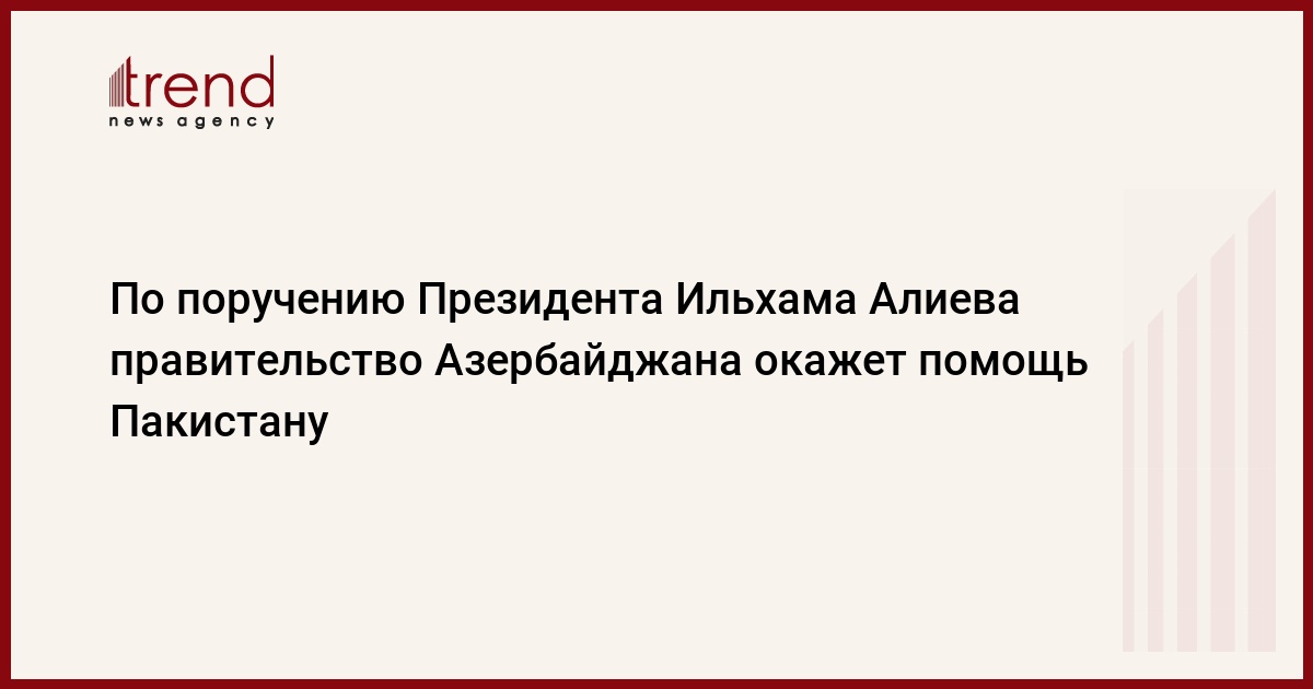БАКУ /Trend/ - В соответствии с поручением Президента Азербайджана Ильхама Алиева, с целью ликвидации последствий проливных дождей и наводнений, приведших к многочисленным человеческим жертвам и крупномасштабным разрушениям в Пакистане, правительством Азербайджана Пакистану будет оказана помощь в размере 2 миллионов долларов США.