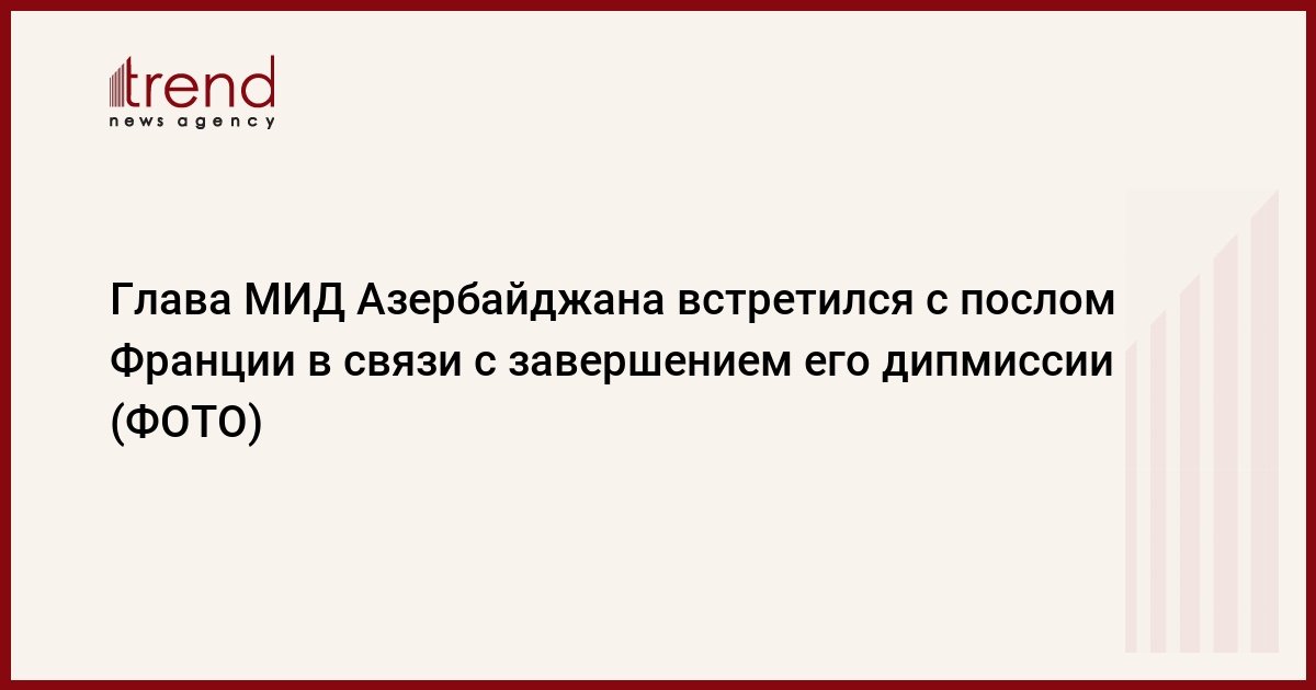 БАКУ /Trend/ - 5 сентября министр иностранных дел Азербайджана Джейхун Байрамов принял чрезвычайного и полномочного посла Франции в Азербайджане Закари Гросса по случаю завершения его дипломатической деятельности в стране.