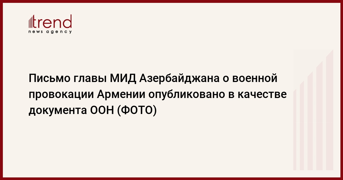 БАКУ /Trend/ - Письмо министра иностранных дел Азербайджана Джейхуна Байрамова о продолжающейся незаконной военной деятельности Армении, включая установку мин на территории Азербайджана, опубликовано в качестве документа Генеральной Ассамблеи ООН и Совета Безопасности ООН.
