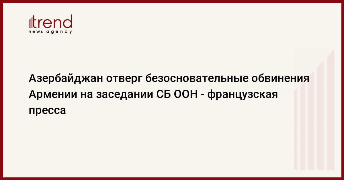 БАКУ /Trend/ - Французский новостной портал La Gazette опубликовал статью под заголовком "Азербайджан отверг безосновательные обвинения Армении на заседании Совета Безопасности ООН, созванном Францией" (L’Azerbaïdjan rejette les allégations dénuées de fondement de l'Arménie devant le Conseil de Sécurité des Nations Unies, saisi par la France).