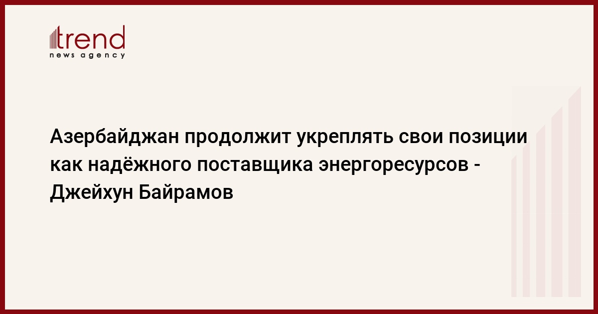 "Мы продолжим укреплять наши позиции как надёжного поставщика энергоресурсов. Недавно подписанный меморандум о сотрудничестве между ЕС и Азербайджаном в сфере энергетики - удачный пример позиции Азербайджана как обеспечителя энергетической безопасности", - сказал он.