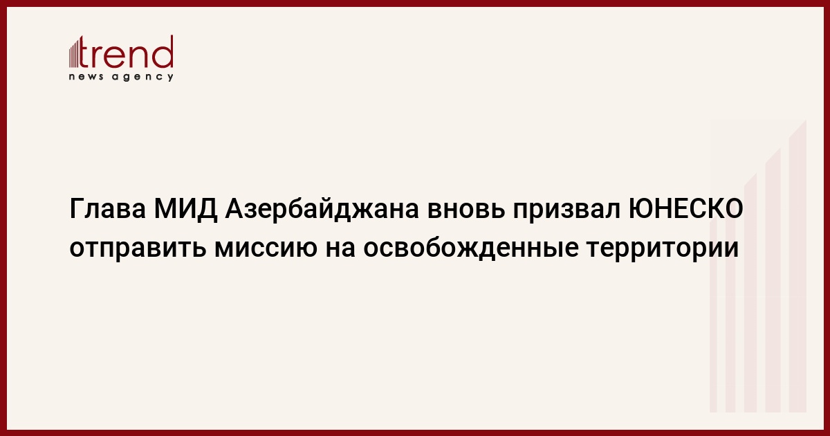 БАКУ /Trend/ - ЮНЕСКО все еще не отправила миссию на освобожденные территории Азербайджана для проведения оценки нанесенного в период оккупации ущерба.