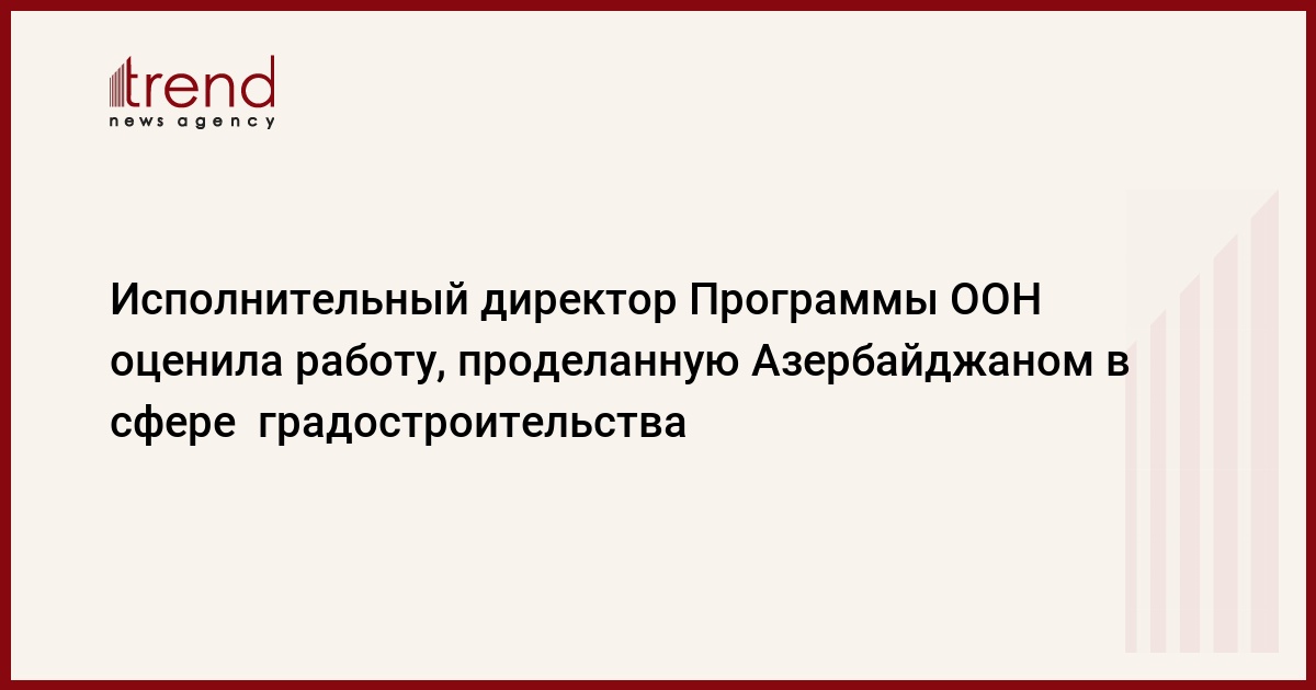 Как сообщает Trend, об этом сказала исполнительный директор Программы ООН по населенным пунктам Маймуна Мохд Шариф во время выступления на Азербайджанском национальном градостроительном форуме, состоявшемся в Агдаме при совместном сотрудничестве Программы ООН и Государственного комитета по градостроительству и архитектуре Азербайджана при организационной поддержке Университета АDА.