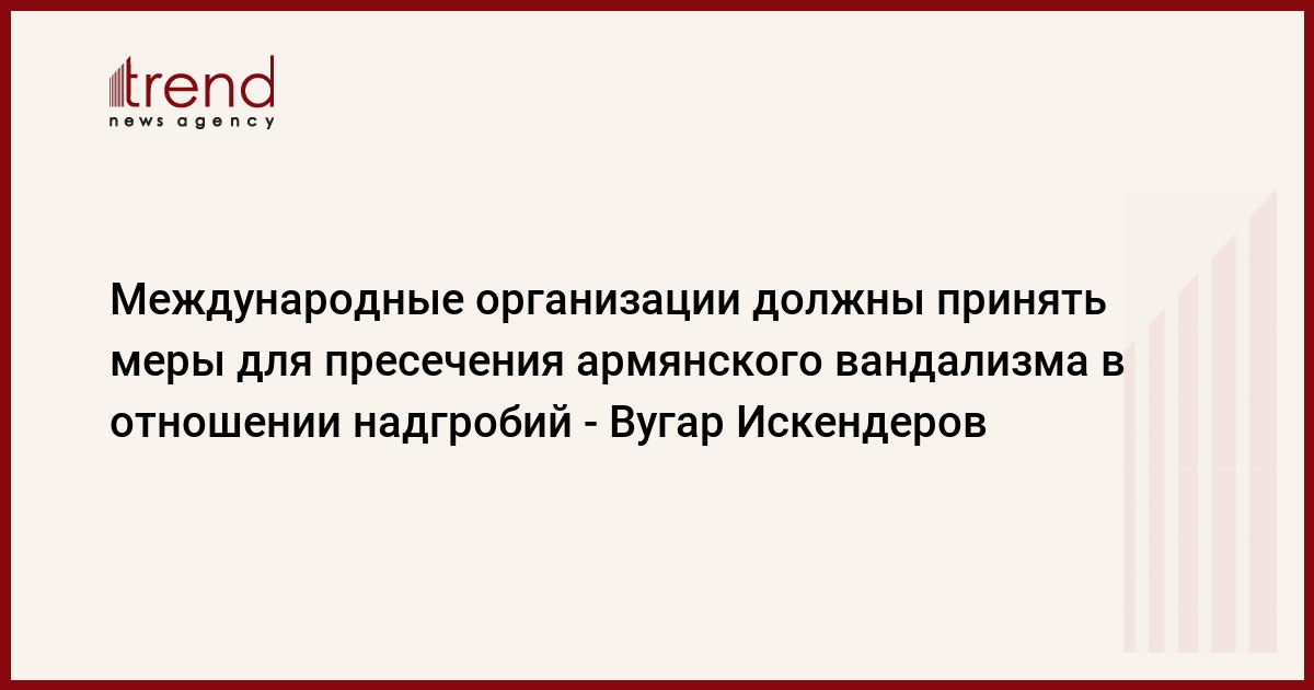БАКУ /Trend/ - Международные структуры должны принять меры, чтобы положить конец продолжающемуся вандализму армян в отношении азербайджанских могил.