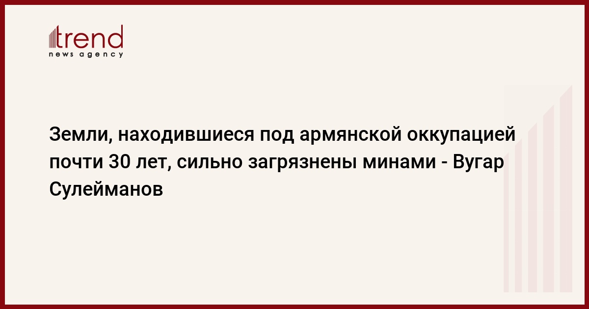 БАКУ /Trend/ - Наши территории, находившиеся под армянской оккупацией почти 30 лет, сильно загрязнены минами.