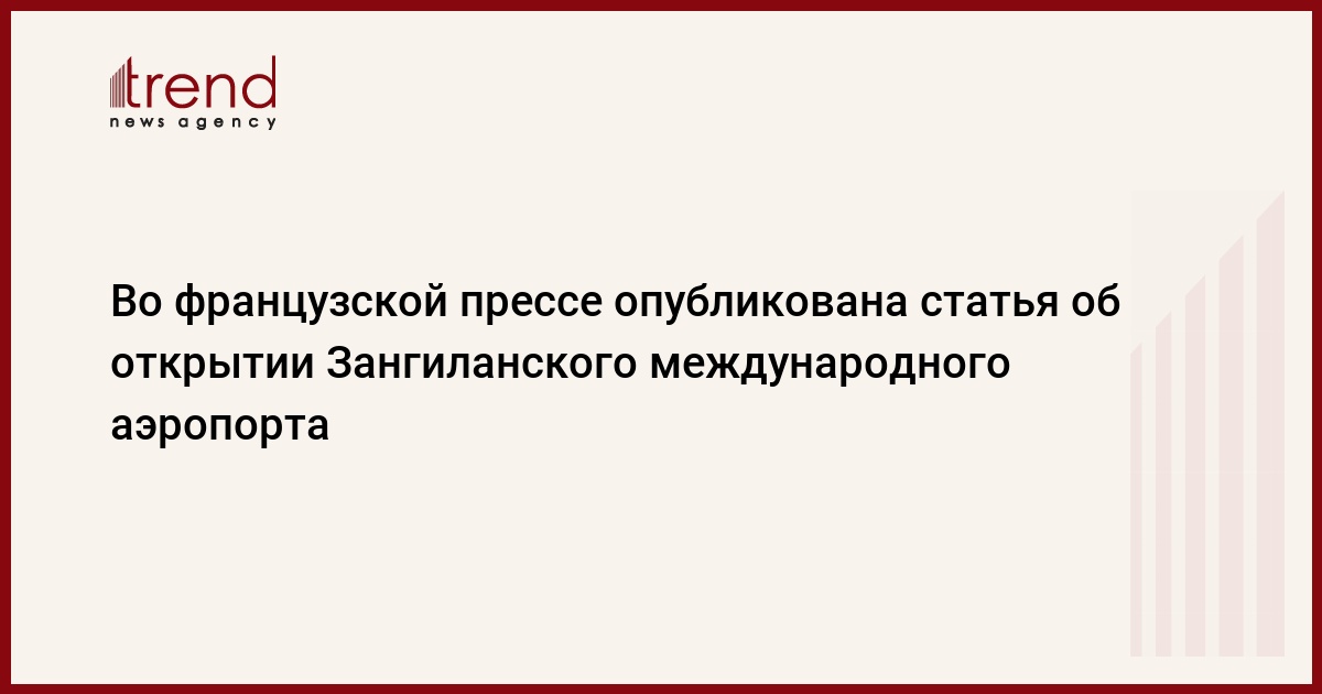 БАКУ /Trend/ - На французском новостном портале La Gazette опубликована статья о церемонии открытия Зангиланского международного аэропорта, которая состоялась 20 октября с участием Президента Азербайджана Ильхама Алиева и Президента Турции Реджепа Тайипа Эрдогана.