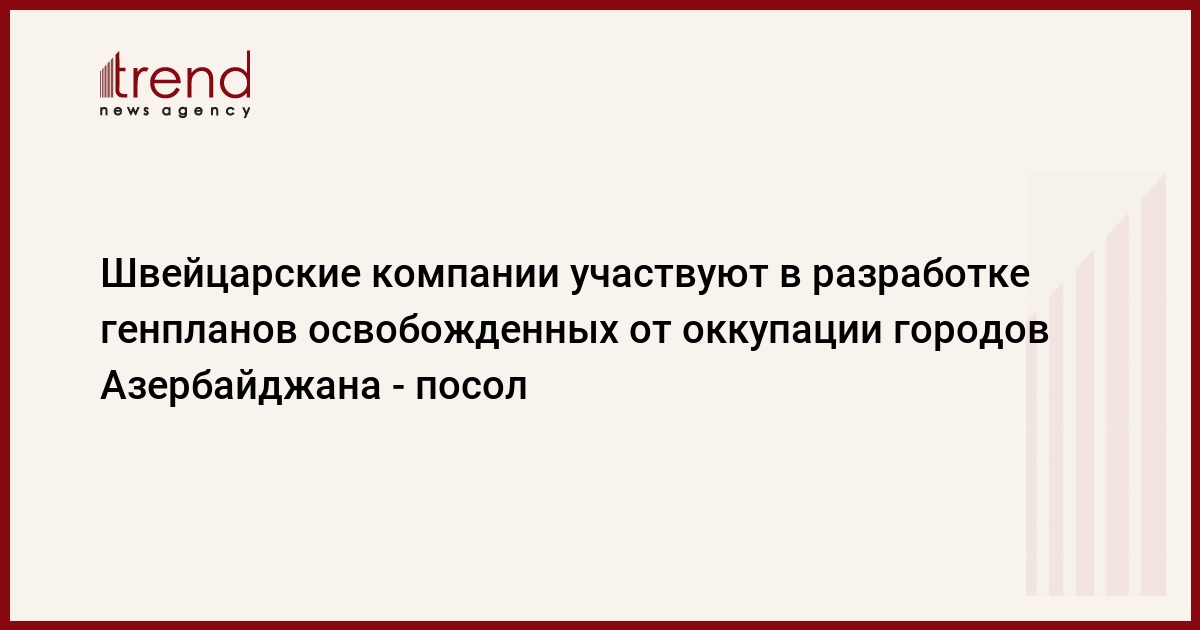 БАКУ /Trend/ - Швейцарские компании участвуют в разработке генпланов городов Азербайджана, которые были разрушены в период армянской оккупации.