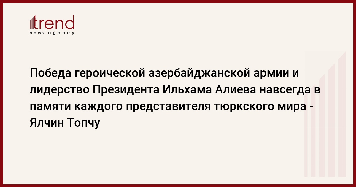 БАКУ /Trend/ - Победа азербайджанского народа, героической армии страны и лидерство Президента Ильхама Алиева, которые вписали почетную страницу в славную историю, навсегда в памяти каждого представителя тюркского мира.