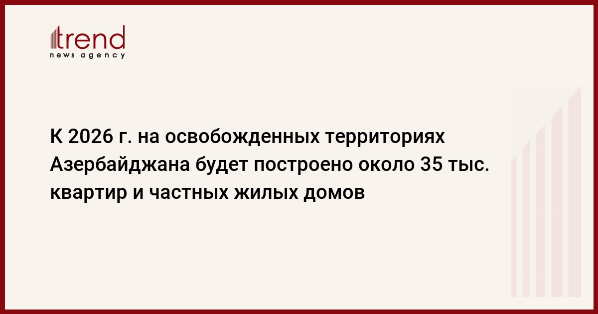 БАКУ /Trend/ - К 2026 году на освобожденных от оккупации территориях Азербайджана будет построено 34 500 квартир и частных жилых домов.