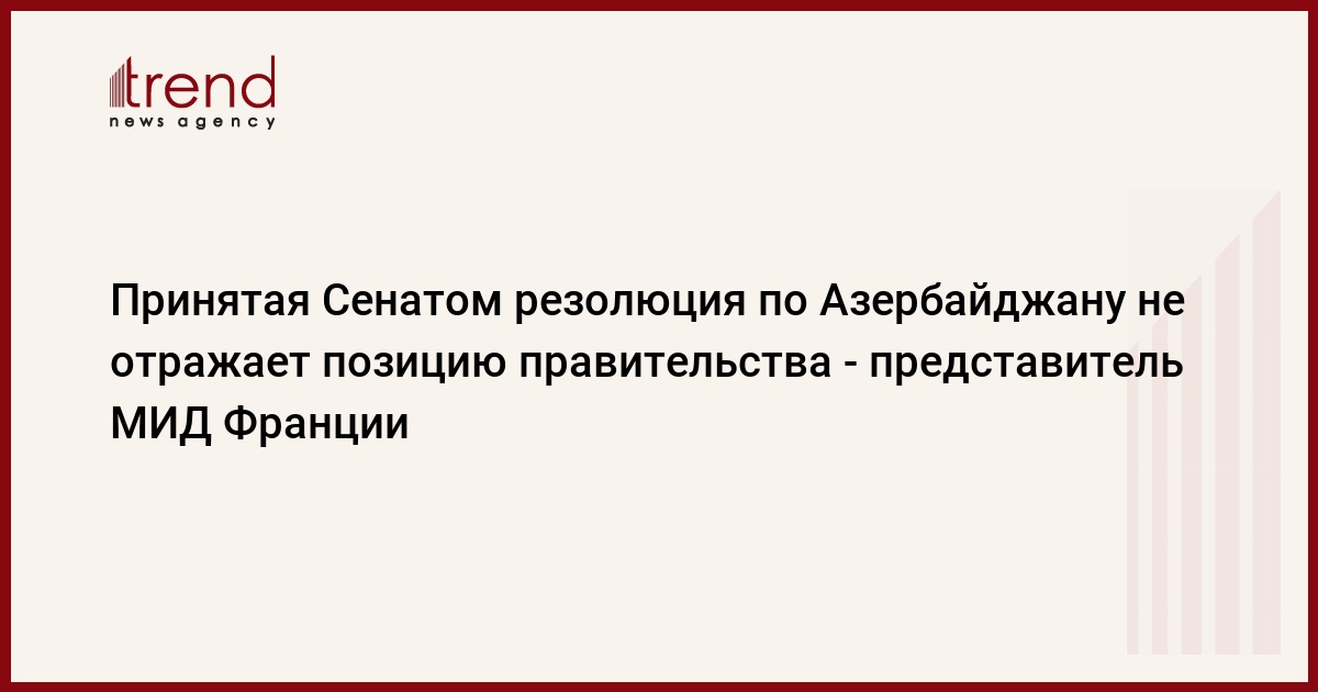 БАКУ /Trend/ - Принятая Сенатом резолюция по Азербайджану не отражает позицию правительства Франции.