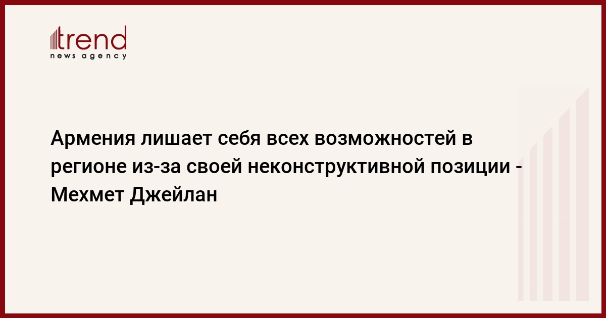 БАКУ /Trend/ - Армения лишает себя всех возможностей в регионе из-за своей неконструктивной позиции. Хотя Азербайджан предложил подписать мирный договор, Армения до сих пор не дала адекватного ответа.