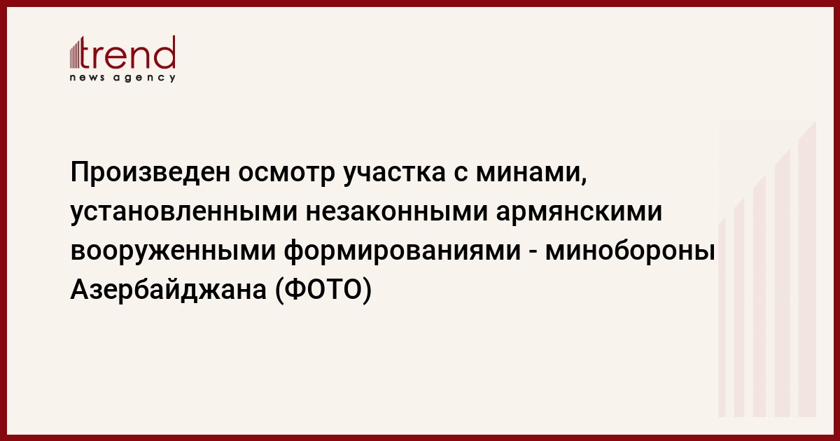 БАКУ /Trend/ - Проведен осмотр минного поля, усеянного противопехотными минами армянского производства, которые были зарыты незаконными армянскими вооруженными формированиями. Минное поле было обнаружено инженерно-сапёрными подразделениями Азербайджанской Армии в северном направлении вершины Сарыбаба, сообщает в среду Trend со ссылкой на министерство обороны Азербайджана.