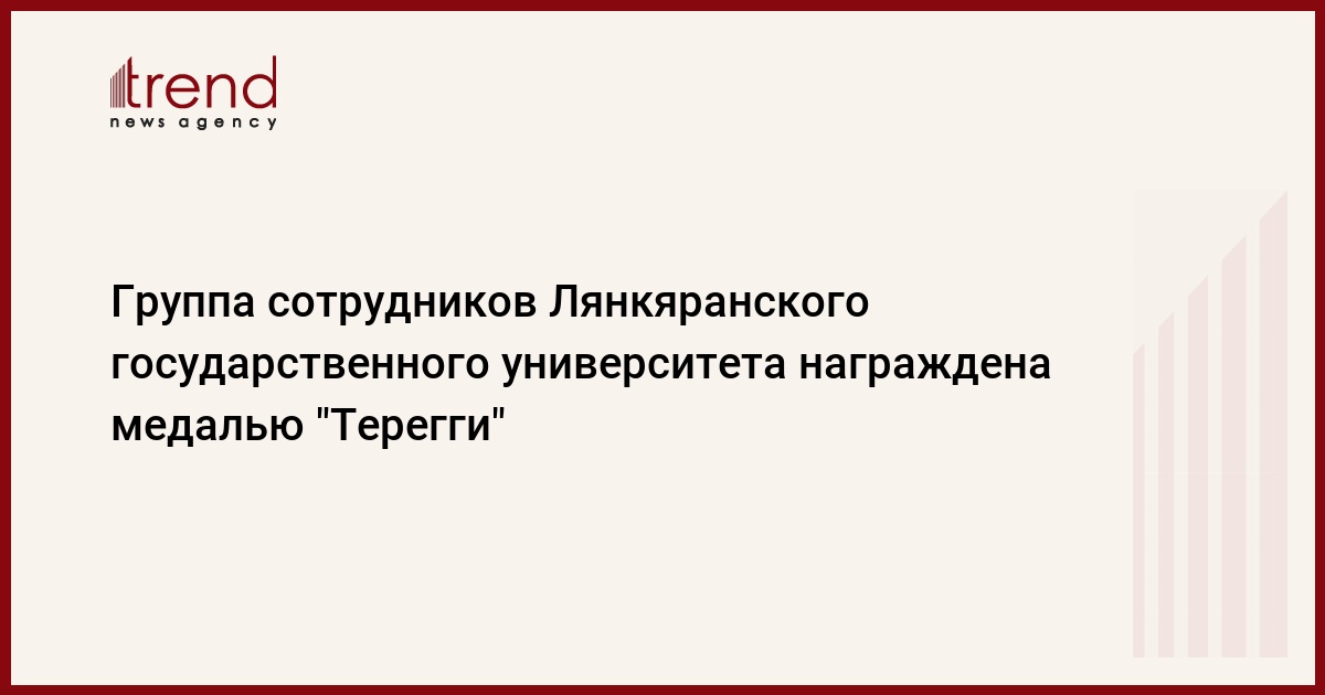Согласно распоряжению, по случаю 30-летия Лянкяранского государственного университета и за заслуги в развитии сферы образования в Азербайджане медалью "Терегги" награждаются следующие сотрудники университета:
