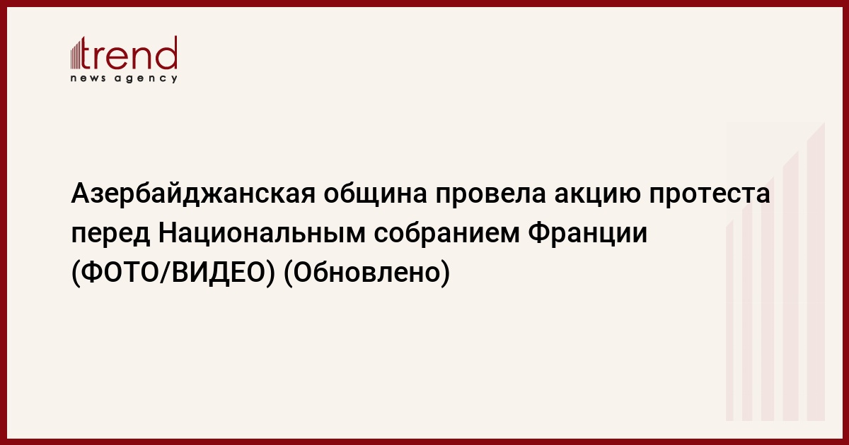 БАКУ /Trend/ - 28 ноября представители азербайджанской общины в Европе провели мирную акцию у Национального собрания Франции в знак протеста против обсуждения антиазербайджанской резолюции.