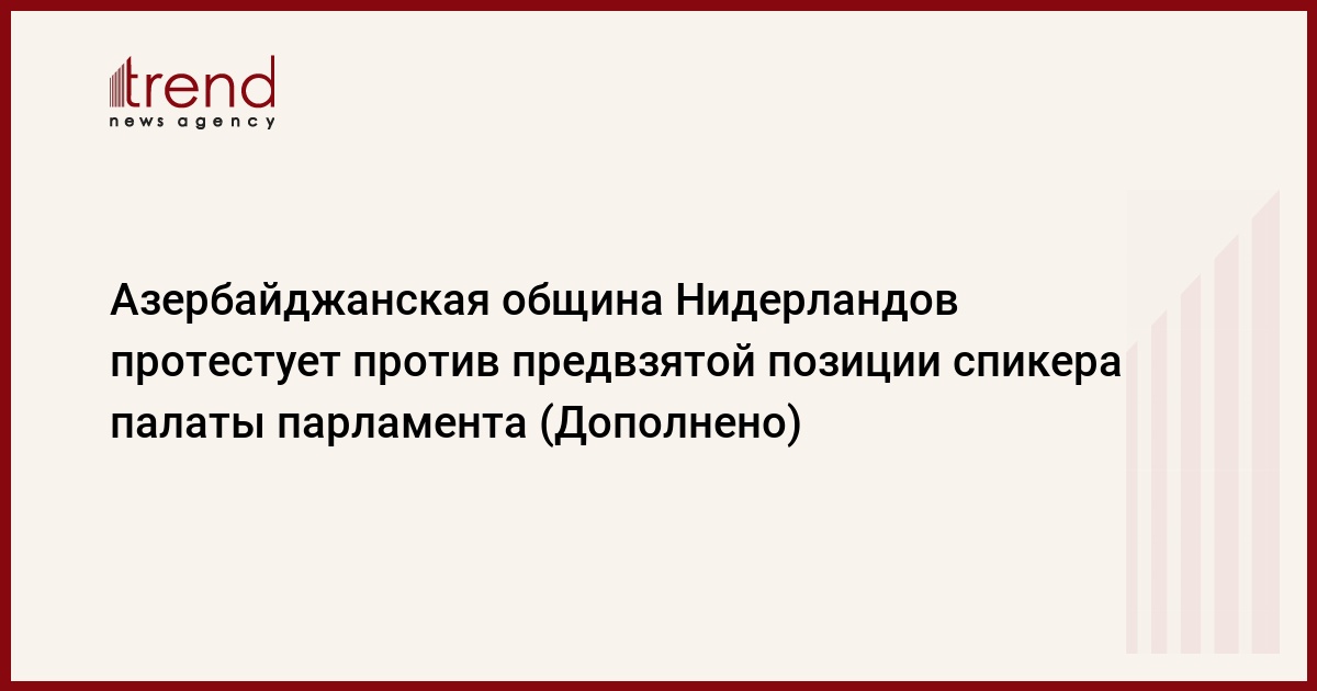 БАКУ /Trend/ - Азербайджанская община, действующая в Нидерландах, обратилась в Нижнюю палату парламента этой страны, в связи с предвзятой позицией председателя Палаты представителей парламента Нидерландов.