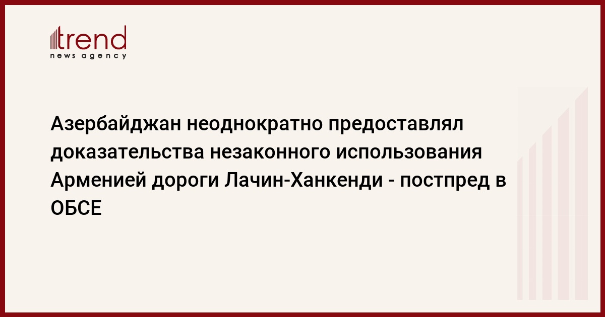 БАКУ /Trend/ - Азербайджан неоднократно предоставлял доказательства незаконного использования Арменией дороги Лачин-Ханкенди.