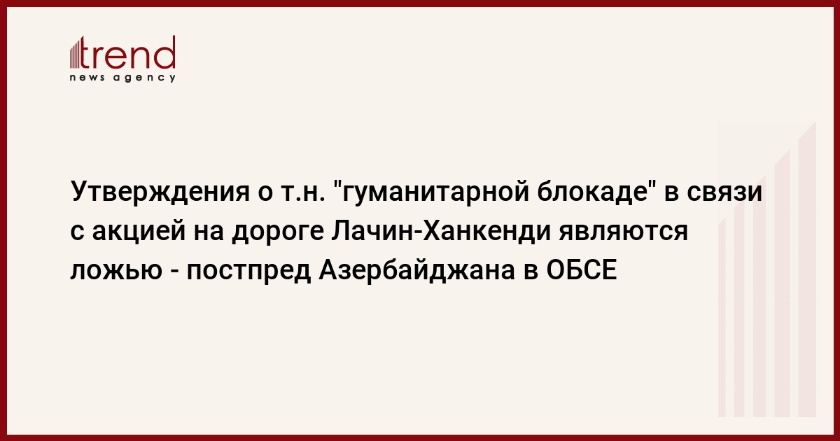 БАКУ /Trend/ - Утверждения о "гуманитарных последствиях" ситуации в связи с мирными протестами на дороге Лачин-Ханкенди являются ложными.