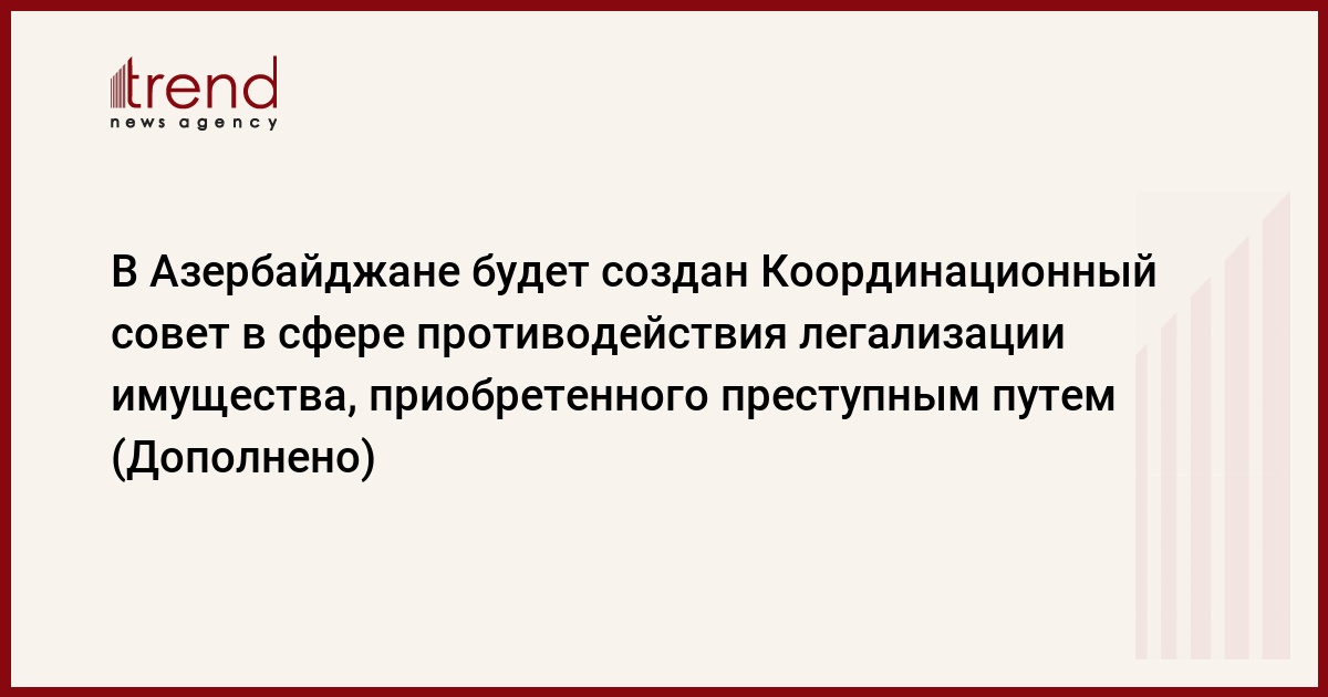 БАКУ /Trend/ - В Азербайджане будет создан Координационный совет в сфере противодействия легализации имущества, приобретенного преступным путем.