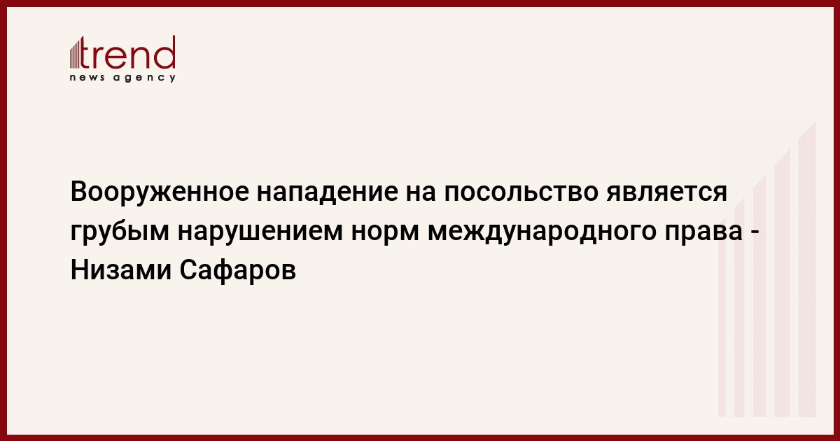 БАКУ /Trend/ - Вооруженное нападение на посольство Азербайджана в Иране следует охарактеризовать как грубое нарушение фундаментальных норм международного права.