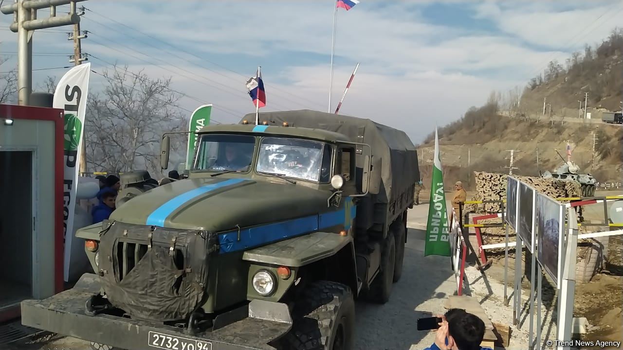 ШУША /Trend/ - Автомобили, принадлежащие российским миротворцам, беспрепятственно передвигаются через территорию проведения мирной акции на Лачинской дороге.