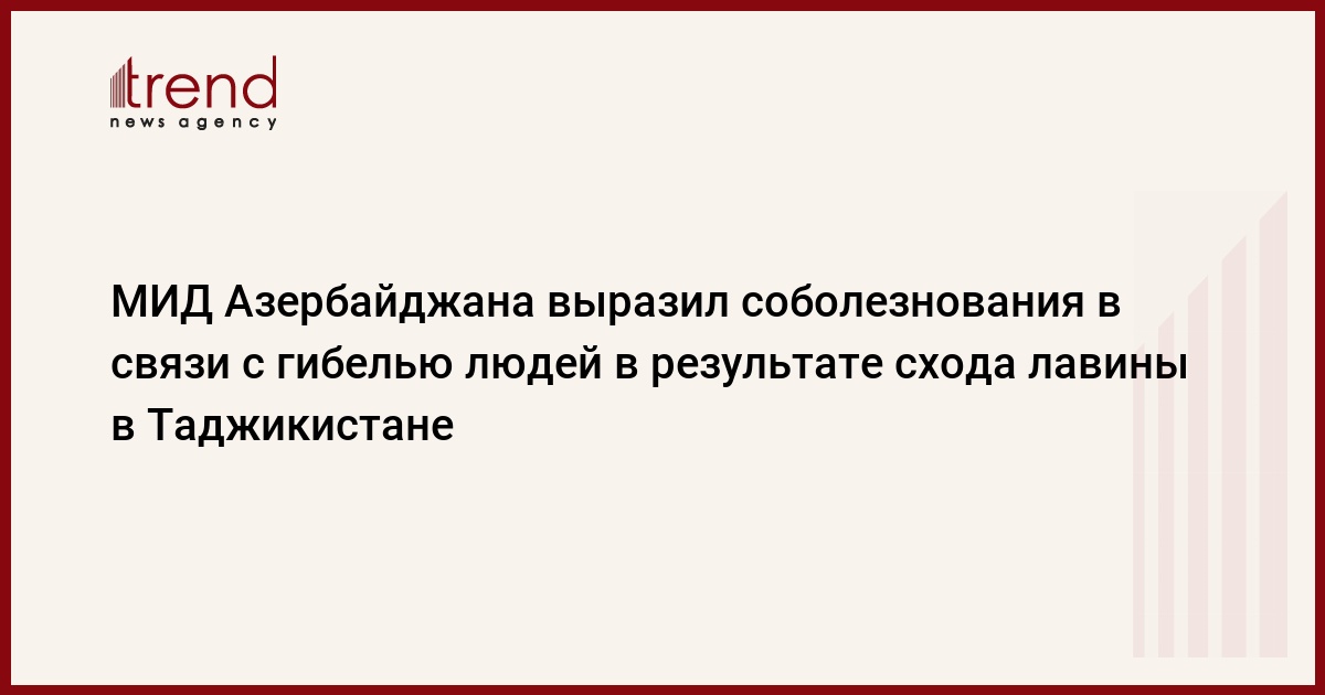 БАКУ /Trend/ - Министерство иностранных дел Азербайджана выразило соболезнования министерству иностранных дел Таджикистана в связи с гибелью людей в результате схода лавины в этой стране.
