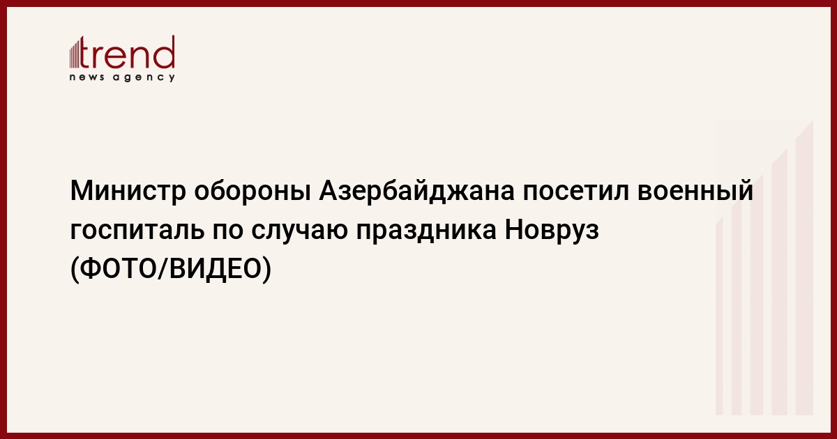 БАКУ /Trend/ - 19 марта министр обороны Азербайджана генерал-полковник Закир Гасанов и руководящий состав министерства посетили Главный клинический госпиталь Министерства обороны по случаю праздника Новруз, передает Trend со ссылкой на пресс-службу минобороны.