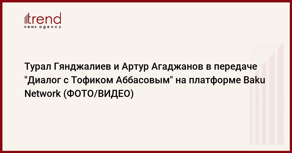 БАКУ/Trend/ - На экспертной платформе Baku Network вышел в эфир очередной выпуск аналитического видеопроекта "Диалог с Тофиком Аббасовым".