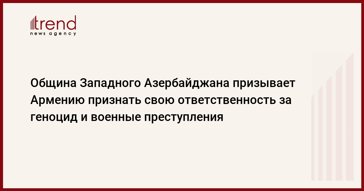 БАКУ /Trend/ - Община Западного Азербайджана призывает Армению признать свою ответственность за геноцид и военные преступления.