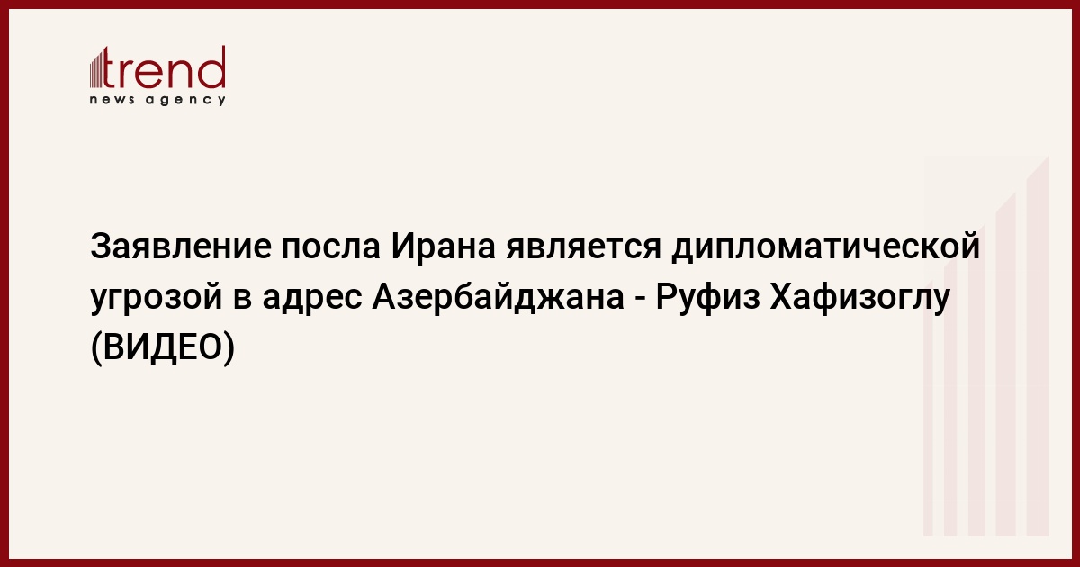 "Считаю, что такое заявление посла Ирана является дипломатической угрозой Азербайджану. Несмотря на то, что отношения между Азербайджаном и Ираном долгое время были напряженными, Азербайджан предпринял определенные шаги для нормализации дипломатических отношений с Ираном. Но, к сожалению, позитивных изменений в политике Ирана по отношению к Азербайджану не наблюдается. Постепенно эта политика становится все более радикальной и развивается в направлении экспорта террора, целью которой является подрыв внутренней стабильности Азербайджана", - сказал Хафизоглу.
