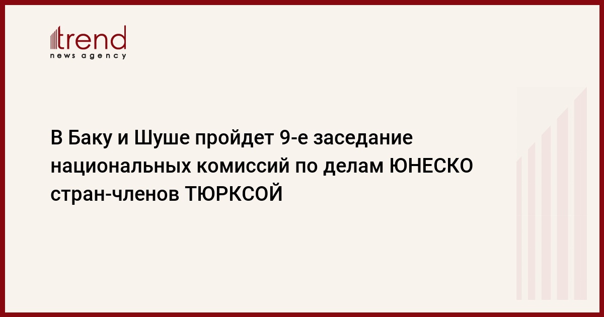 БАКУ /Trend/ - Церемония открытия 9-го заседания национальных комиссий по делам ЮНЕСКО стран-членов TЮРКСОЙ будет организована совместно Национальной комиссией Азербайджанской Республики по делам ЮНЕСКО при Президенте Азербайджанской Республики, Международной организацией тюркской культуры (TЮРКСОЙ), Университетом ADA и Институтом развития и дипломатии Университета в Баку 7 апреля.