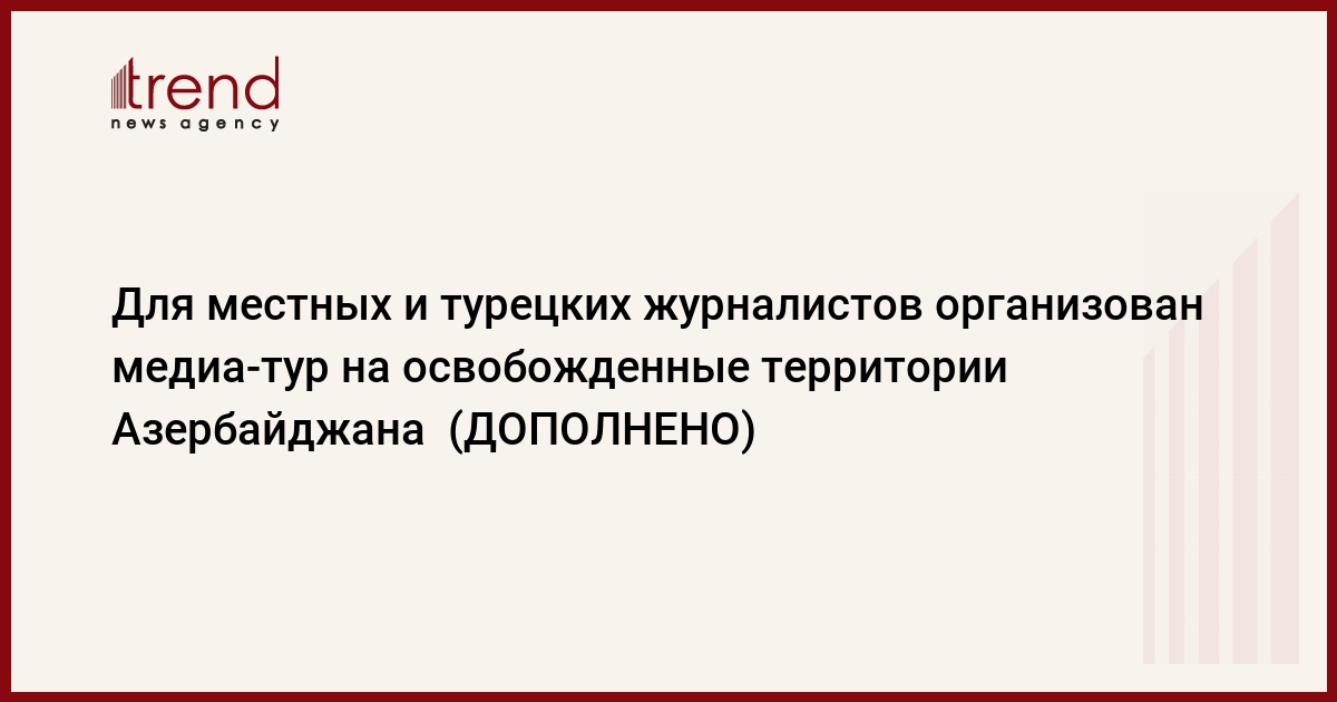 БАКУ /Trend/ - В целях ознакомления с деятельностью Азербайджанской армии на освобожденных территориях 6 апреля Министерством обороны был организован очередной медиа-тур для группы представителей местных и турецких СМИ.