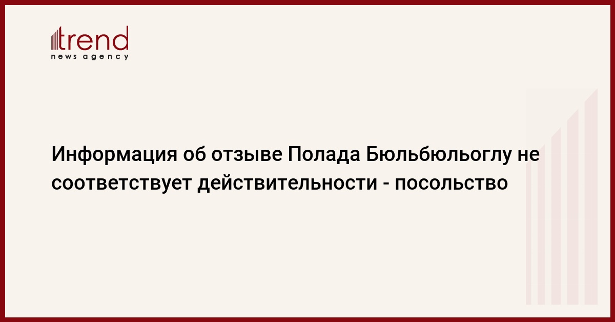 "В связи с информацией под заголовком "Полад Бюльбюльоглу отзывается с поста посла" заявляем, что статья, представленная как "эксклюзив", преследующая целью привлечь больше читателей и состоящая из набора слов, не имеет под собой никаких оснований", - говорится в заявлении.