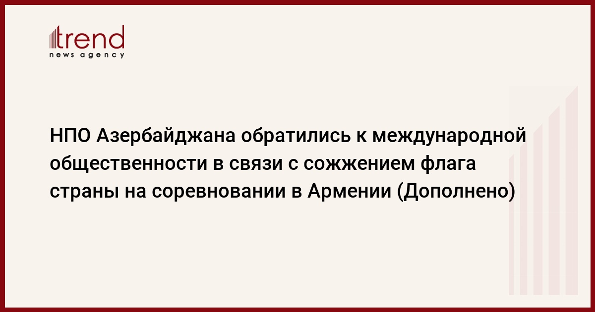 БАКУ /Trend/ - НПО Азербайджана, действующие в сфере спорта, обратились к международной спортивной общественности в связи с сожжением флага страны на соревновании в Армении, сообщает в субботу Trend.