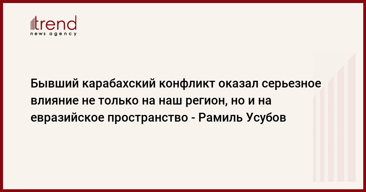 БАКУ /Trend/ - Бывший карабахский конфликт оказал серьезное влияние не только на наш регион, но и на евразийское пространство.